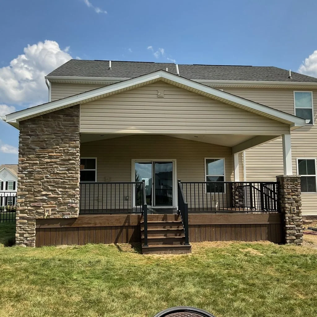Decks & Porches Above Ground Pool Deck Deck & Stairs Patio Roof with Stone Exterior Covered Patio With Fireplace