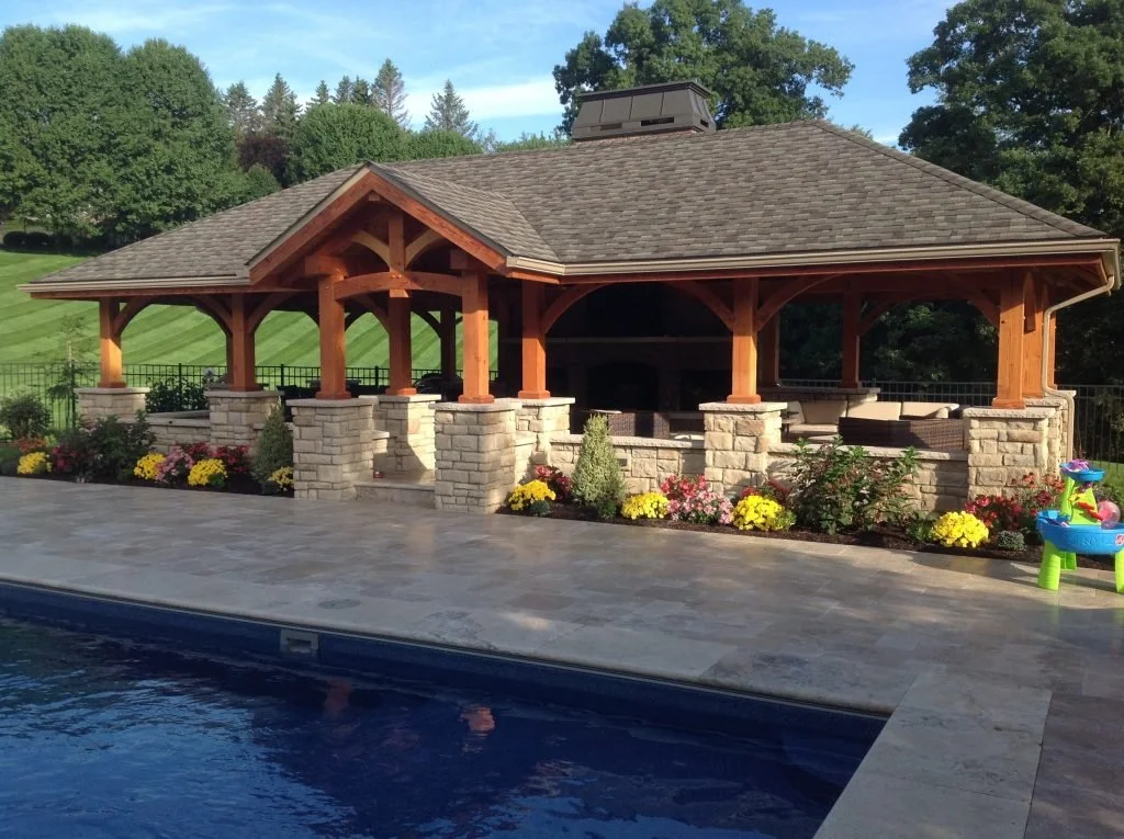 Pool Houses Rustic Pool House Modern Pool House Luxury Pool Pavilion Pool House with Outdoor Kitchen Stone & Wood Pool Pavilion Rustic Indoor Pool Enclosure Covered Pool Patio